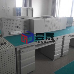 本案配置情况:2000*900*1700mm,绿色防静电重型台面 配置:钢制方钢支撑、钢制镶嵌式电源盒插座、物料盒架、单层可调高度仪表台、单侧冲孔工艺看板上下排布,看板底部可镶嵌电子触摸屏,三防照明及工具滑轨,双层钢制吊抽