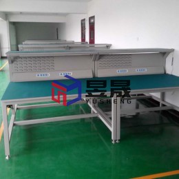 本案配置情况:1400*750*1250mm,绿色防静电台面 配置:钢制方钢支撑、钢制镶嵌式T型电源盒插排、钢制冲孔平板看板、单层仪表台并做防静电处理、LED照明