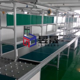 本案配置情况:复合型多流道生产流水线,传输介质莱福伦,单层载料工装板,整体骨架采用专用铝材搭建,主线体为环形流水作业模式,线体多处采用万向牛眼台,将主线体一分多个部分,给特定区间供给产品。主线体配双层置物台,按工位配备插排,绿色有机玻璃看板一字排布,配LED照明、电动工具轨道,牛眼台底部加装密封板。