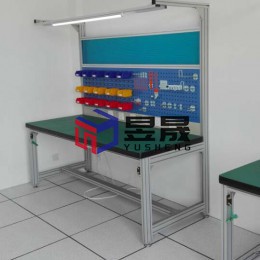 本案配置情况:1500*1600*2000, 绿色防静电重型台面 配置:钢制铝材型支架、电源插座、冲孔工艺看板(有机玻璃板)、照明、物料台 ,可配抽屉,易布局,简洁大方