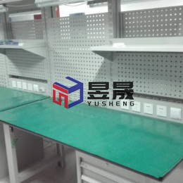 本案配置情况:1600*750*1910mm,绿色防静电高分子台面 配置:钢制重型架及落地柜支撑、钢制电源盒镶嵌电源、钢制冲孔看板,钢制百叶方孔多方式配合、单层仪表台