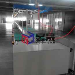 本案配置情况:三流道生产流水线,两侧上下料传顺,按相反方向传输,中间回空板,按工位配置挡停机构,平移机构、可选配工装板、物料台、工艺看板、灯饰板、电源、照明、气路、工具滑轨、灯饰板及报警装置等