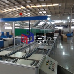 本案配置情况:三流道生产流水线,两侧上下料传顺,按相反方向传输,按工位配置挡停机构(手动或脚踏可选),可选配工装板、物料台、气路、工艺看板、灯饰板、电源、照明、工具滑轨、灯饰板及报警装置等