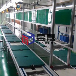 本案配置情况:环形流道生产流水线,两侧上下料传顺,按相反方向传输,按工位配置挡停机构(手动或脚踏可选),可选配工装板、物料台、气路、工艺看板、灯饰板、电源、照明、工具滑轨、灯饰板及报警装置等