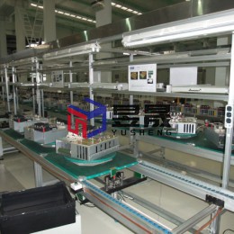 输送线链条采用三倍速链条,链条滚轮采用工程塑胶,具有耐磨、噪音低等特点,输送工装板时顺畅圆滑,运转时安静无声,平稳传动。依照客户生产制程及厂房空间条件,可为客户量身设计规划,务求合理的设计可为客户节省空间的同时达到最佳的生产流程。配置升降机接送可以实现双层和多层输送,达到既输送又储存的目的。配置直角横向移栽机,可作平面转向输送,可以使工装板在一个平面内循环输送、循环使用不下线体。工装板上设导电铜板,可实现带电输送,完成调试、老化、检测功能。公司针对客户生产现场需求,参照国内外先进的电子电器生产技术进行优化设计,人性化操作设计,可精简作业人力,更能大大提高生产效率,生产线零部件采用国内外知名品牌产品,确保生产线长时间稳定运行。