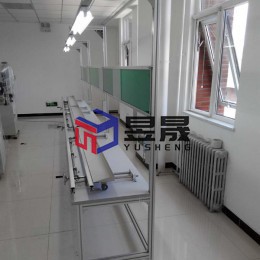 本案配置情况:2000*450*2000mm(L*W*H),多组串联,专用铝材插件线轨道,主体框架铝材搭建,传输介质为钢制链条,手柄+丝杆调节有效传输宽度,速度可调,驱动采用知名品牌马达。配置有物料斗、绿色有机玻璃工艺看板、照明,线体立柱配电源插排,配备独立电箱,采用独立空开控制电源及照明开关。