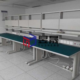 本案配置情况:1500*750*1900mm,绿色防静电台面 配置:钢制L型支撑、钢制镶嵌式电源盒、物料盒挂架、钢制仪表台及工艺看板平板、照明及每工位配双层吊抽