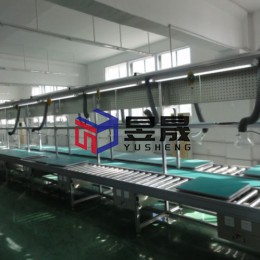 本案配置情况:环型无动力辊筒线,采用镀锌钢制(或不锈钢材质辊筒),以工装板为载体,人工辅助形成产品传输功能,工位间配备烟雾净化系统,按工位配备吸烟分支管道及吸烟喇叭口装置,按需求配备物料台、冲孔工艺看板、照明、电动工具滑轨、灯饰板等,每工位操作位外侧配备单层抽屉,及抽屉上面的面板插座,产品自身规格及重量决定辊筒排布密集程度,框架及传输轨道采用专用定制铝材。