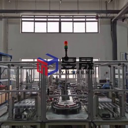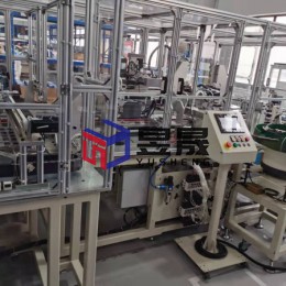将人工摆好托盘的产品放在生产线的上料端,上料机械手将待组装的产品自动抓取到高精密传输线的工装治具内,PCB上料机械人将产品装入外壳内,启动自动螺丝机将PCB板固定在外壳上,通过精密传输线运转到焊接工位,三轴机器人完成焊锡焊接,精密流水线继续运转,上盖自动上料机构将上盖放在治具内的产品上,通过智能相机及其压装装置,完成成品的装卡,成品完成后下料机械手将产品自动装入托盘内,等待人工将产品拿到测试老化间完成后续流程。
